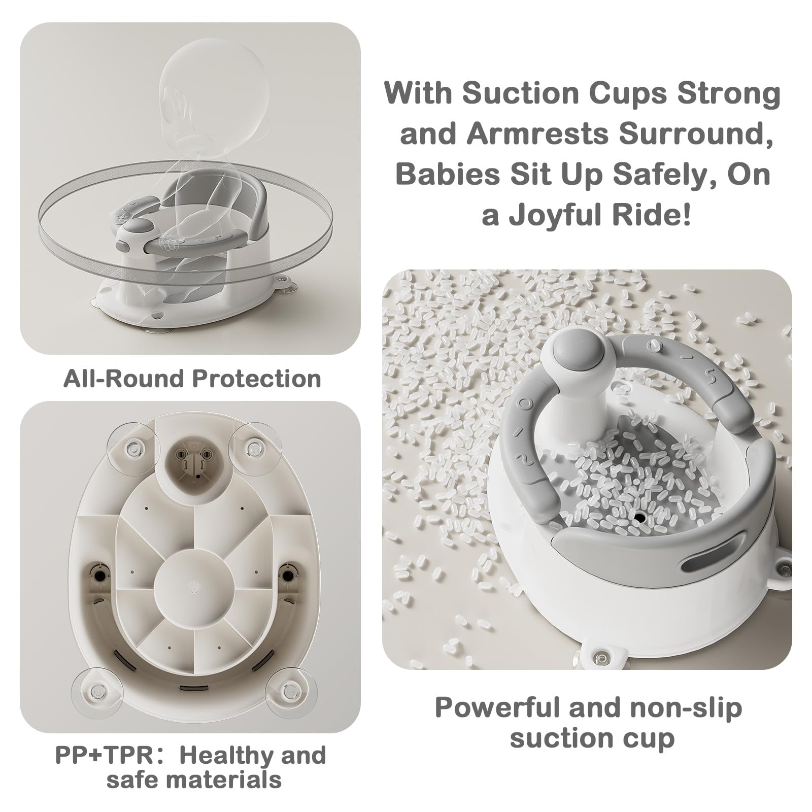 - âď¸ăComfortable and Secure with Strong Non-Slip Suction Cupă:This baby bath chair is designed to sit ergonomically and features a high back and armrests to provide a comfortable bathing experience for your baby. 4 ultra-strong non-slip suction cups ensure stability and securely attach to any smooth bathtub surface to ensure a safe bathing experience.