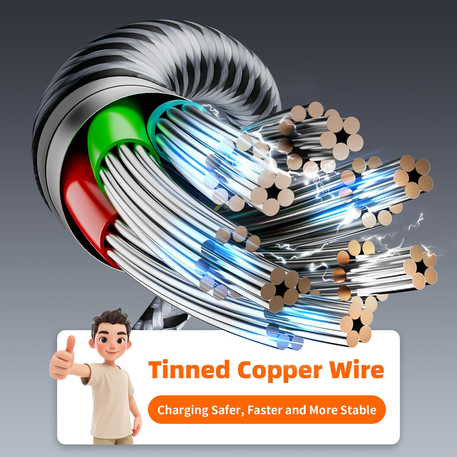 - 【Safe Charging is Above All】The travel 4 in 1 multi usb c to usb c cable features Thickened Tinned Copper Wires, enjoying superior conductivity for safer, more efficient and stable charging. Built-in ntelligent current regulation, this usb c multiple iphone charger cord can also safeguards your devices' batteries life.
