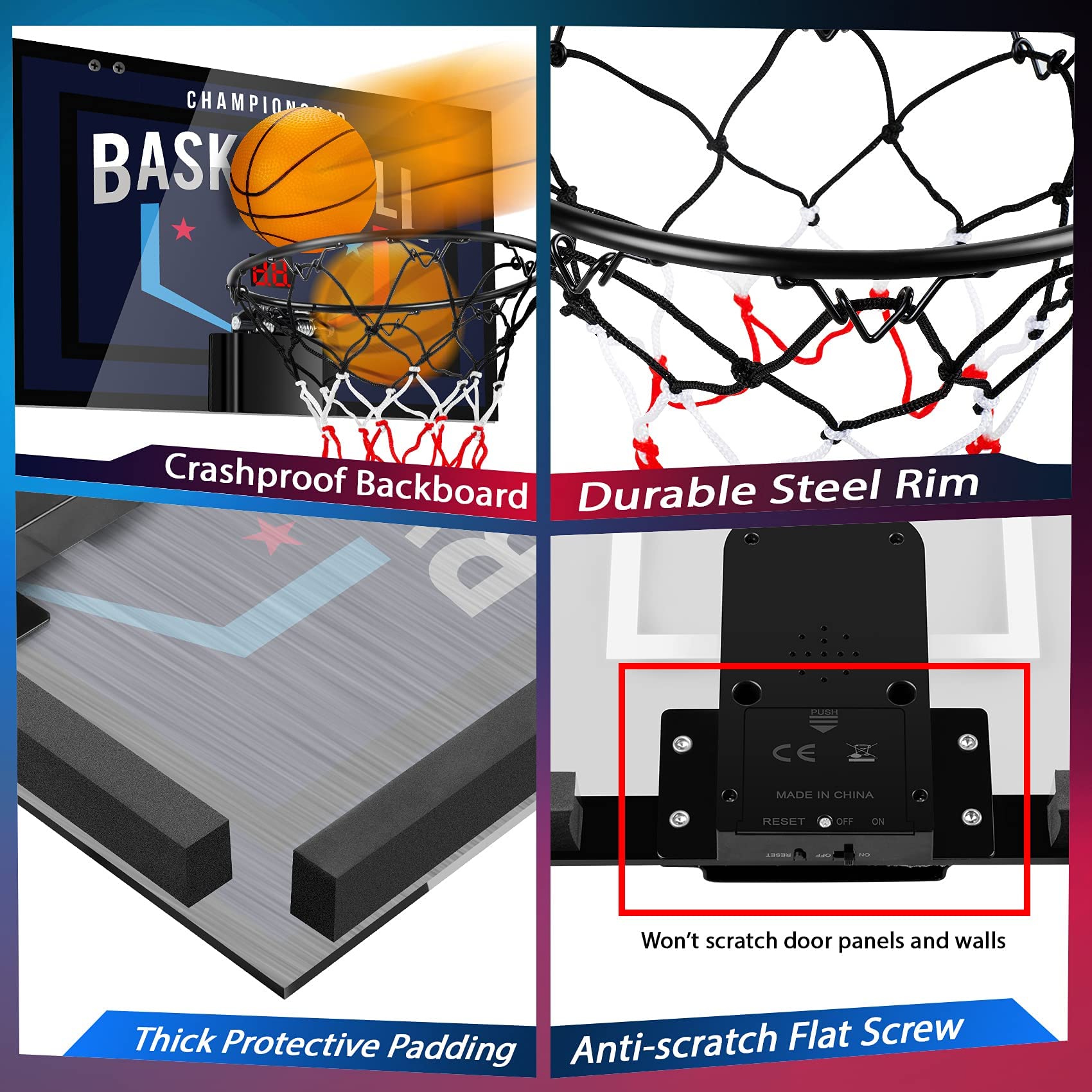 - 【Full of Fun Score Counter】Encourage children’s early love for the game of basketball with the excitement of a crowded gym cheering on their success! Score will be digitally calculated and automatically displayed.