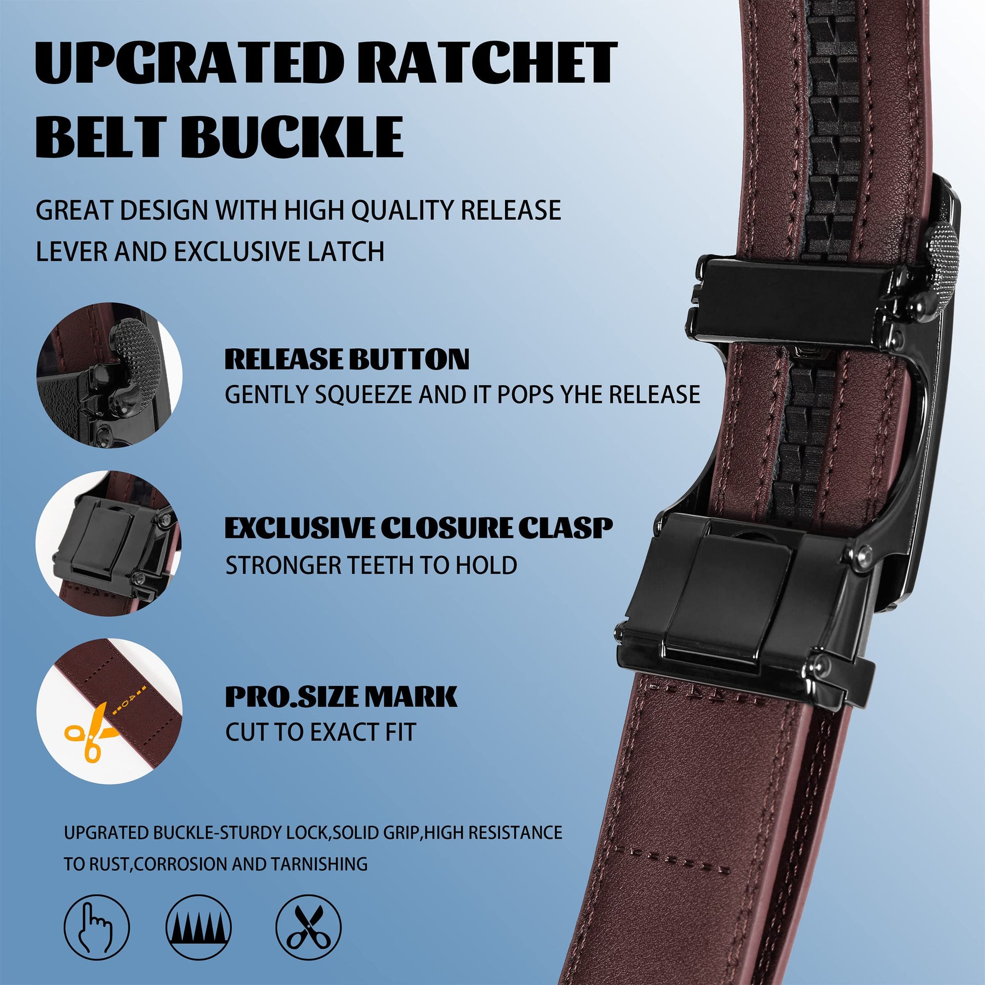 - ✅ 【EXACT FIT & FLEXIBLE ADJUSTMENT】 Unlike traditional hole-punched belts, this ratchet belt offers precise 1/5" adjustments for a perfect fit. Whether you need a snug fit for a polished look or a bit more room after a hearty meal, enjoy unbeatable flexibility that adapts to your needs.