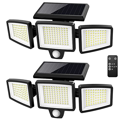 Tuffenough Solar Outdoor Lights 2500LM 210 LED Security Lights with Remote Control,3 Heads Motion Sensor Lights, IP65 Waterproof,270° Wide Angle Flood Wall Lights with 3 Modes(2 Packs)