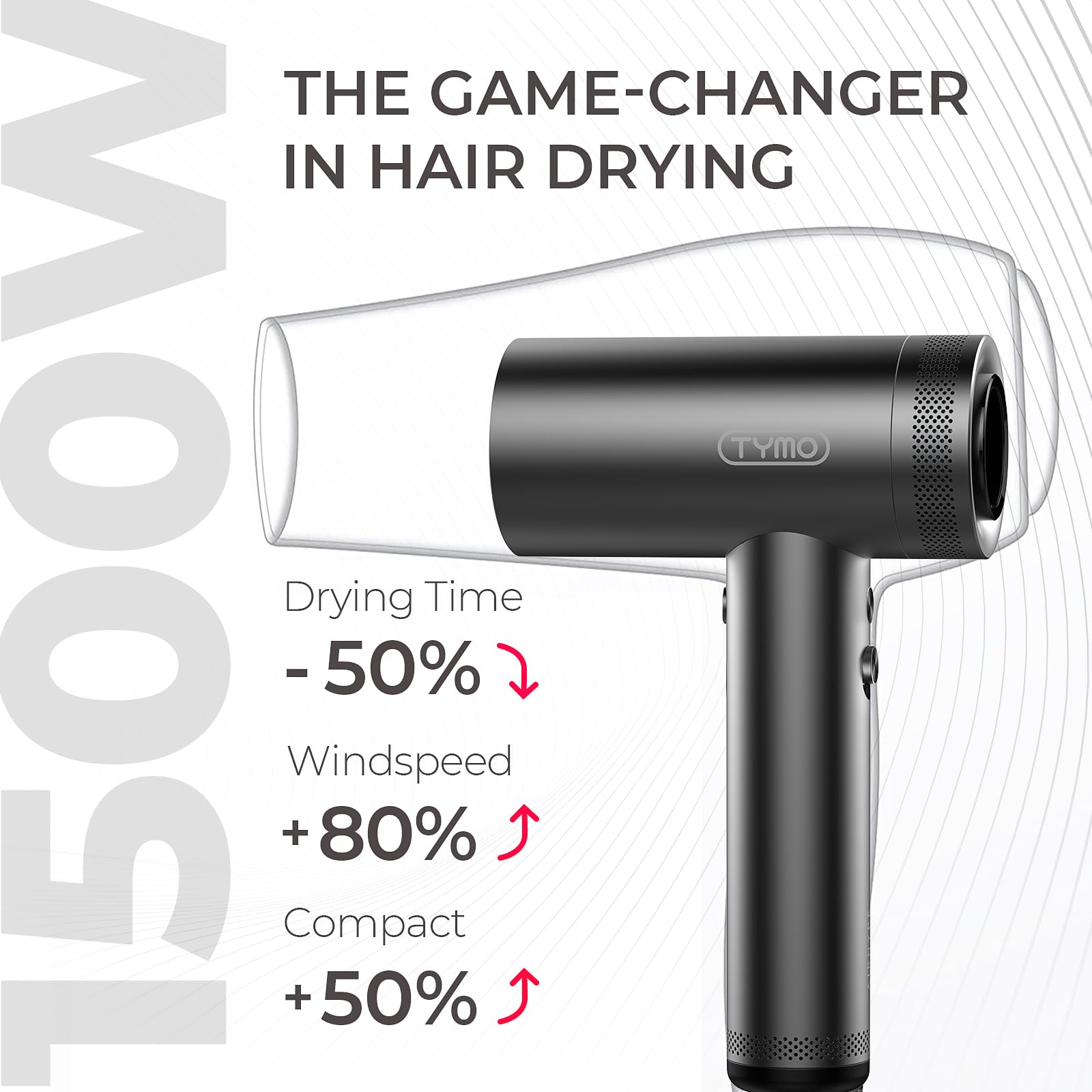 - Professional Hair Dryer with High-Speed Drying and Quiet Operation - TYMO high-speed hair dryer features a powerful 110,000RPM brushless motor that provides a strong airflow, resulting in ultra fast drying experience. Its compact design ensures comfortable use, making it perfect for professionals and home users. With a low noise level, you can enjoy a peaceful styling experience without disturbing your family or roommates, making it perfect for early morning routines.