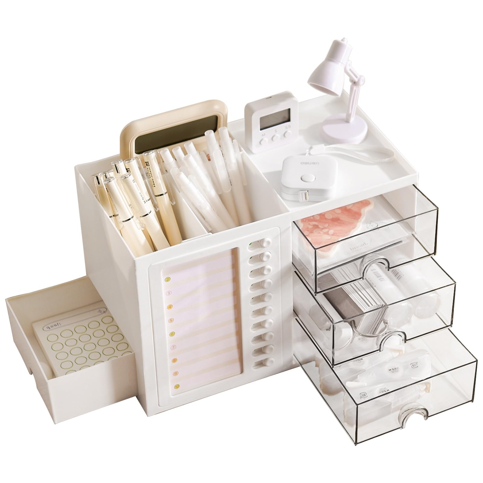 - 【Stylish Design to Your Room】The desk organizer with drawers and modern design of the storage box complements any workspace. The clean lines and neutral colors make it a visually appealing addition to your desk.