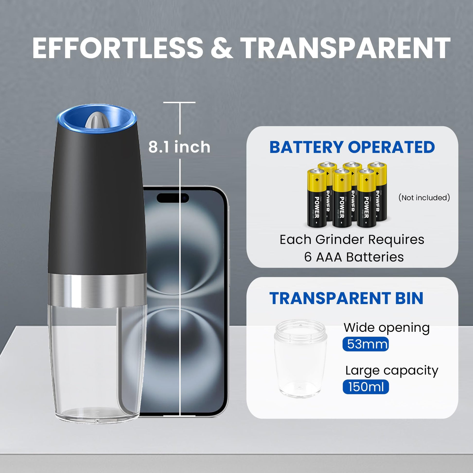 - Consistent Excellence: The UNNEES battery operated salt and pepper grinder set, powered by an efficient motor and innovative design with 6 AAA batteries(not included), guarantees enduring and robust grinding, effortlessly meeting culinary perfection