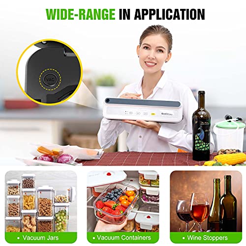 Vacuum Sealer Machine, Food Vacuum Sealer with Powerful Suction | Slim Design | Easy to Use | Led Indicator Lights for Sous Vide, Meal Prep, w/Starter Kits for Vacuum Seal Container