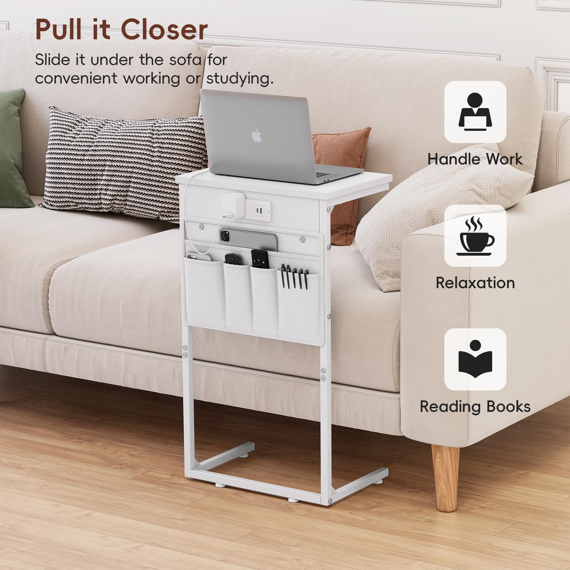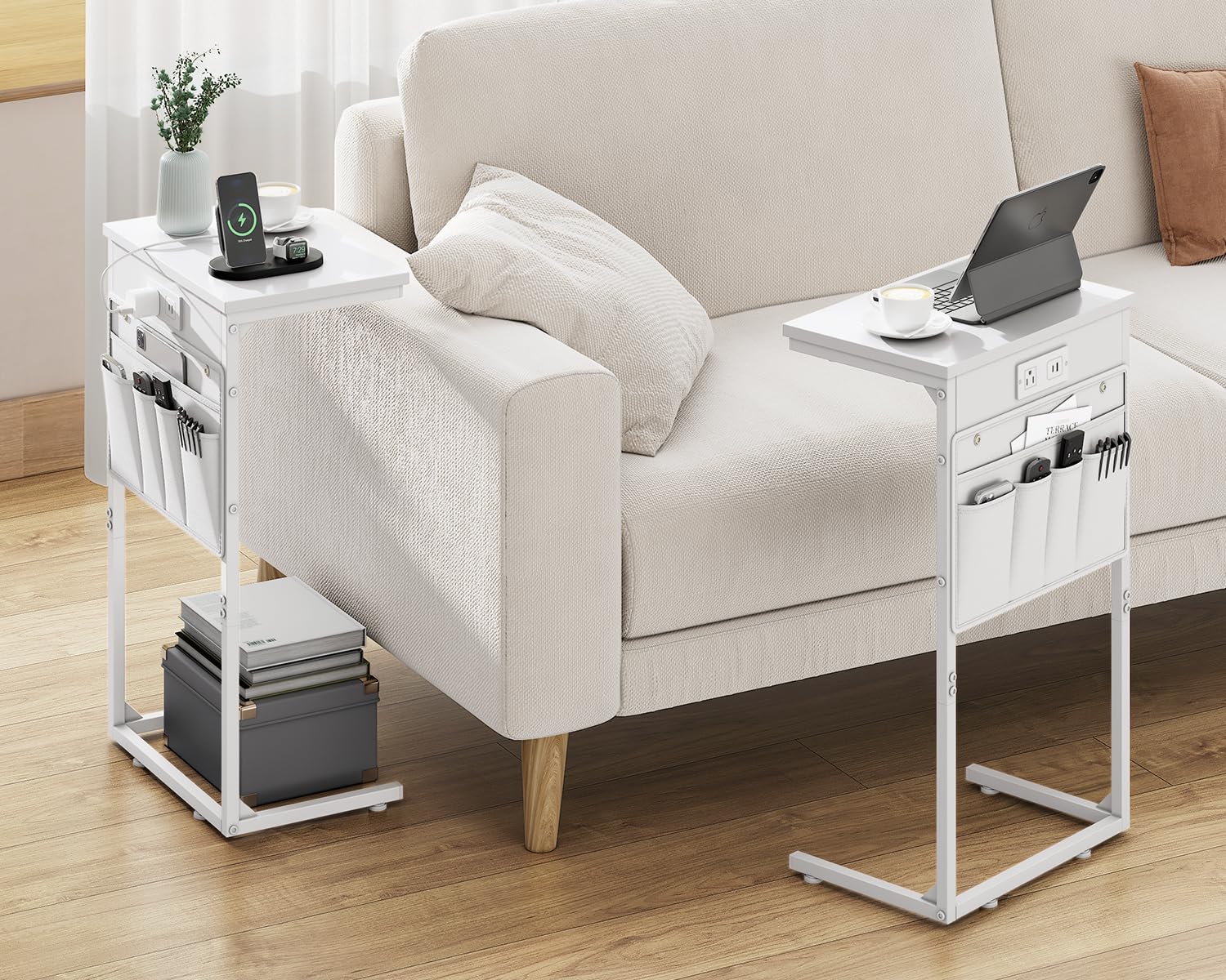- 【C Shaped Design】 Thanks to the C-shaped design, slip the couch side table base under a sofa or chair, offer you convenient access to your laptop for home office. All your needs such as coffee, refreshments, TV remote and magazines within reach. Ideal for adding an extra table lamp, eating while TV, or serve as a desk in a pinch.