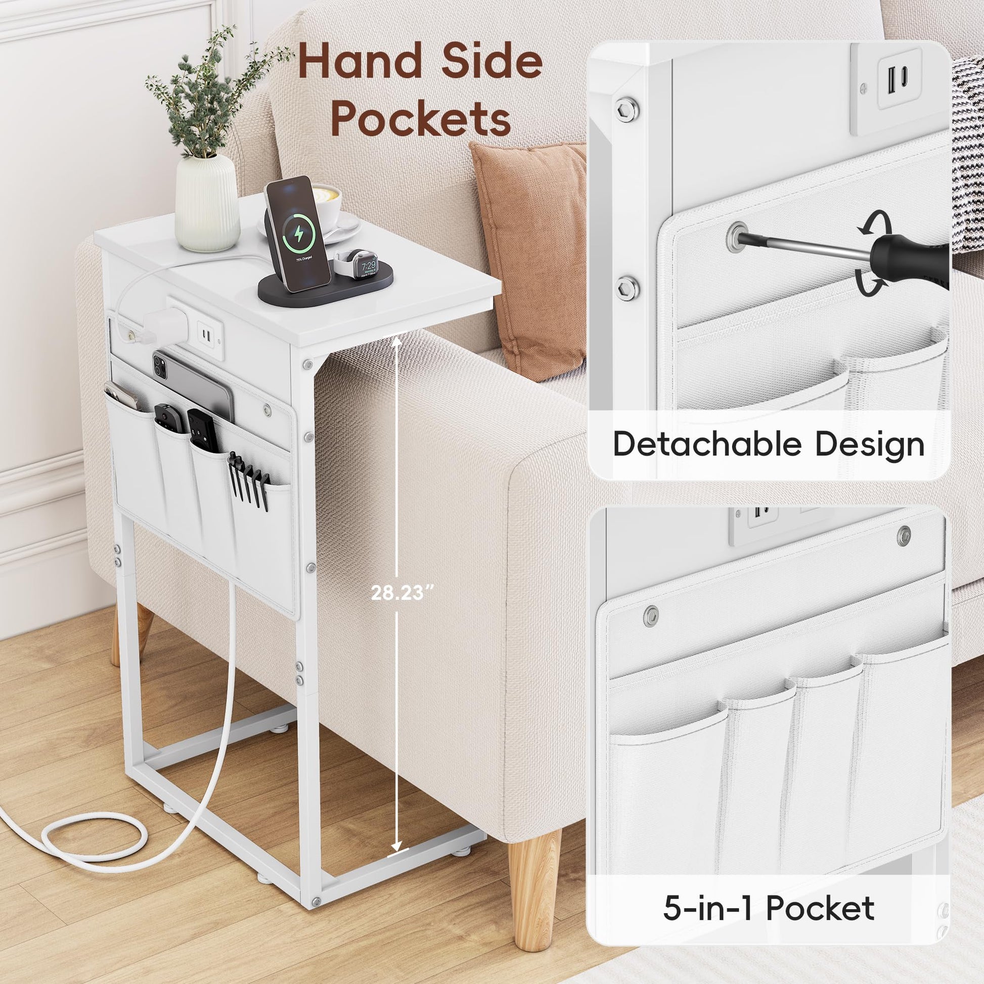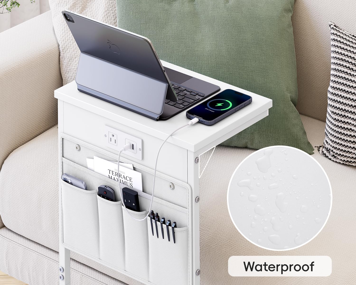 - 【Couch Table with Charging Station】Charging station is designed on the side to avoid accidents caused by spilled drinks. USB Port, Type-C & 3-Prong Power Outlet, it’s just within your arm’s reach. This slim side table helps you charge your phone, tablet, desk lamp or laptop at the same time. 4.9ft power supply cord keep you away from the wall corner where the home power outlet located, no need for extra power strips.