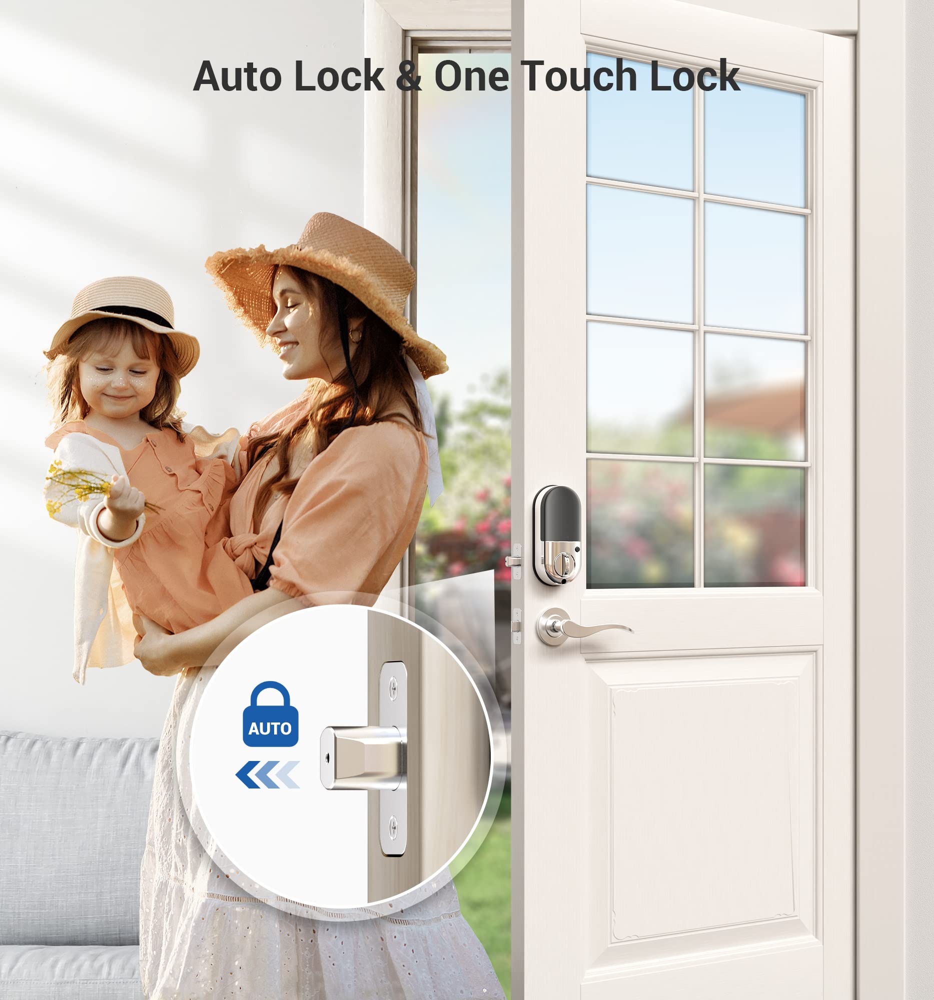 - Enhanced Security: The intelligent lock features auto-lock, one-touch locking, privacy mode, passage mode, and low battery alert, made with an anti-peeping and anti-hacking touchscreen keypad, keeping your home secure