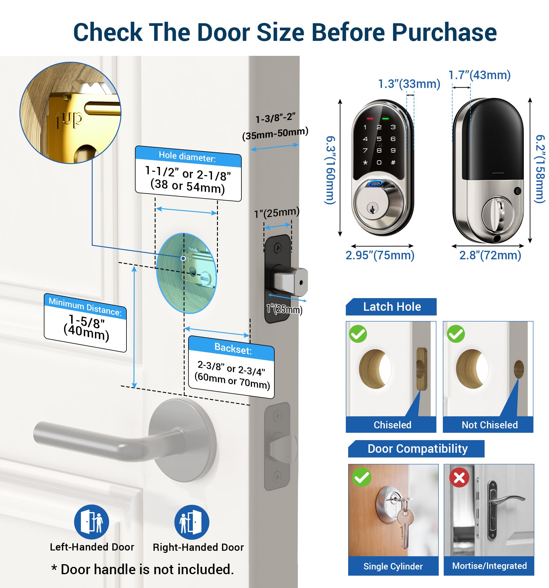 - Veise smart door lock fits on most US standard left-handed and right-handed doors. It is easy to install with just a screwdriver. Veise offers at least 1-year warranty and lifetime online phone support from Monday to Friday 9 AM to 5 PM PST and 24/7 after-sales email service