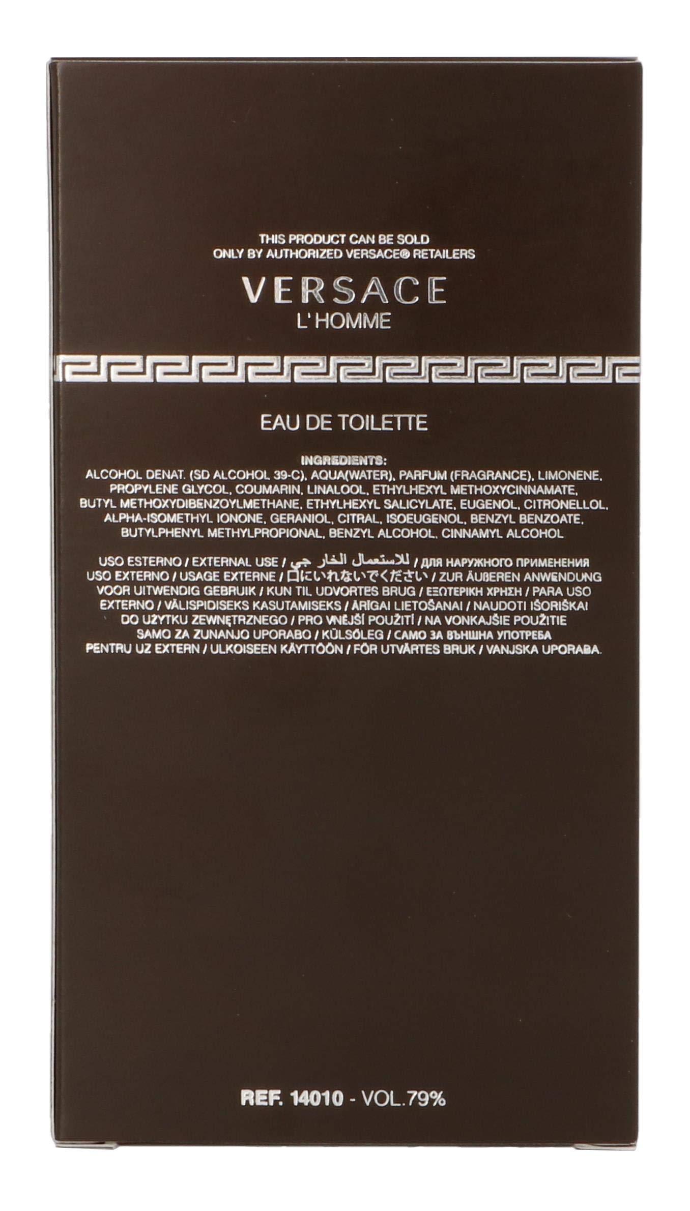 Details: Versace L'homme for Men Eau De Toilette Spray 3.3 Oz / 100 Ml by Gianni Versace. Inspired by the incredible men of Naples who dressed with elan, the Versace L'homme for Men was created in 1984. A sharp, warm, woody scent, it opens with head notes of lemon