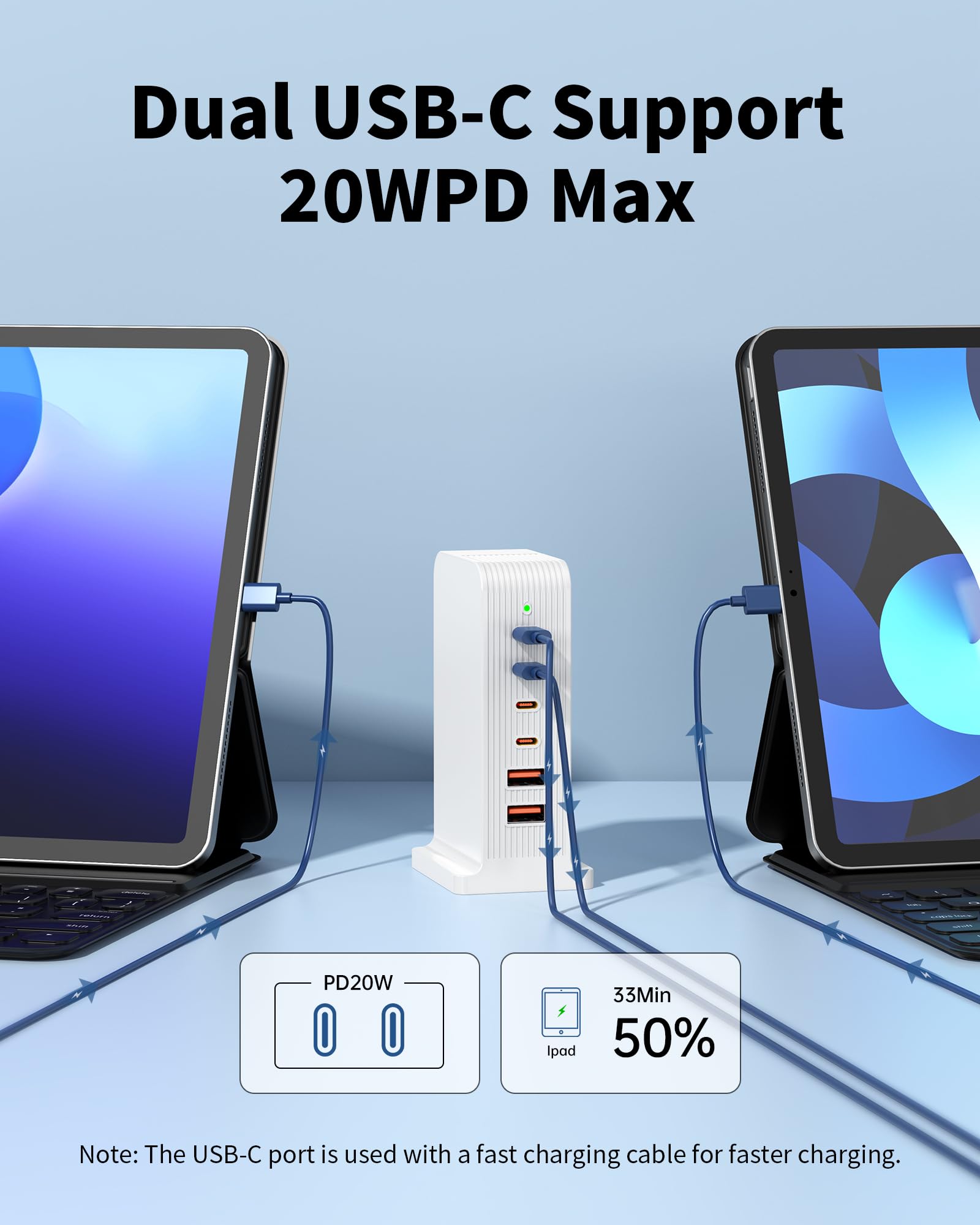 - Charge Multiple Devices Simultaneously: The VPSUN 6-Port USB C Charging Station can charge up to six devices at once, making it perfect for home, office, and travel needs.