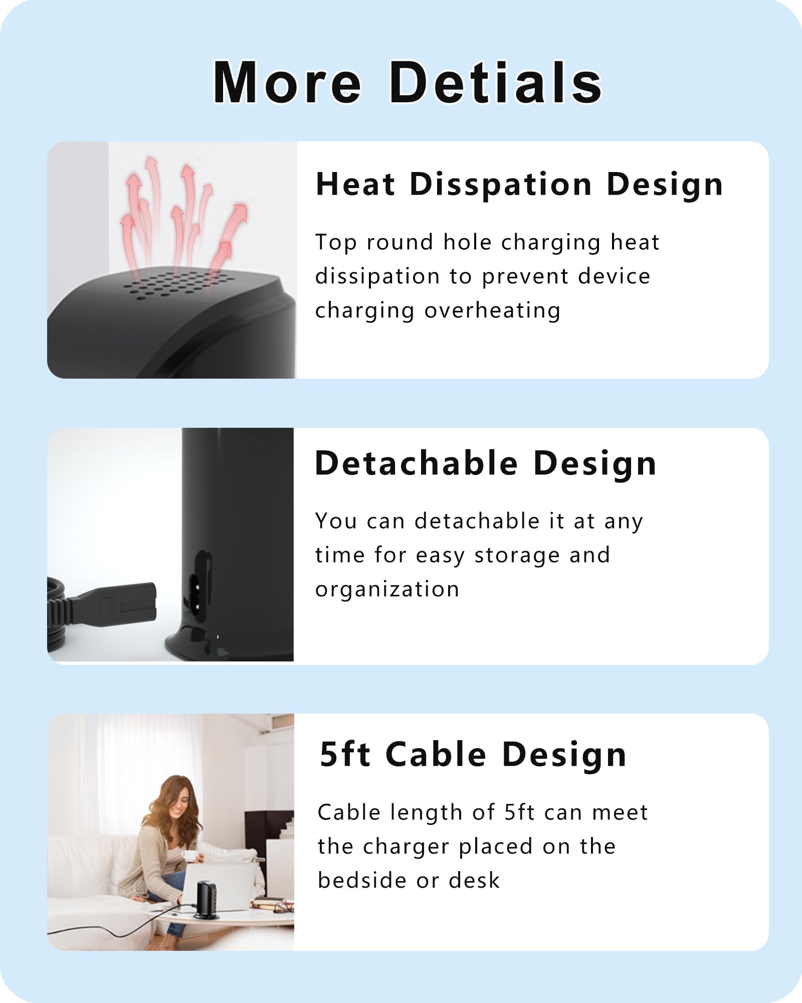 - Portable Size- VPSUN tower charger as smaller as iphone 13 and easy to take where, perfect to charging multi devices on travel or camping, and the charger dock with non-slip design also suitable for nightstands, desktop, etc.