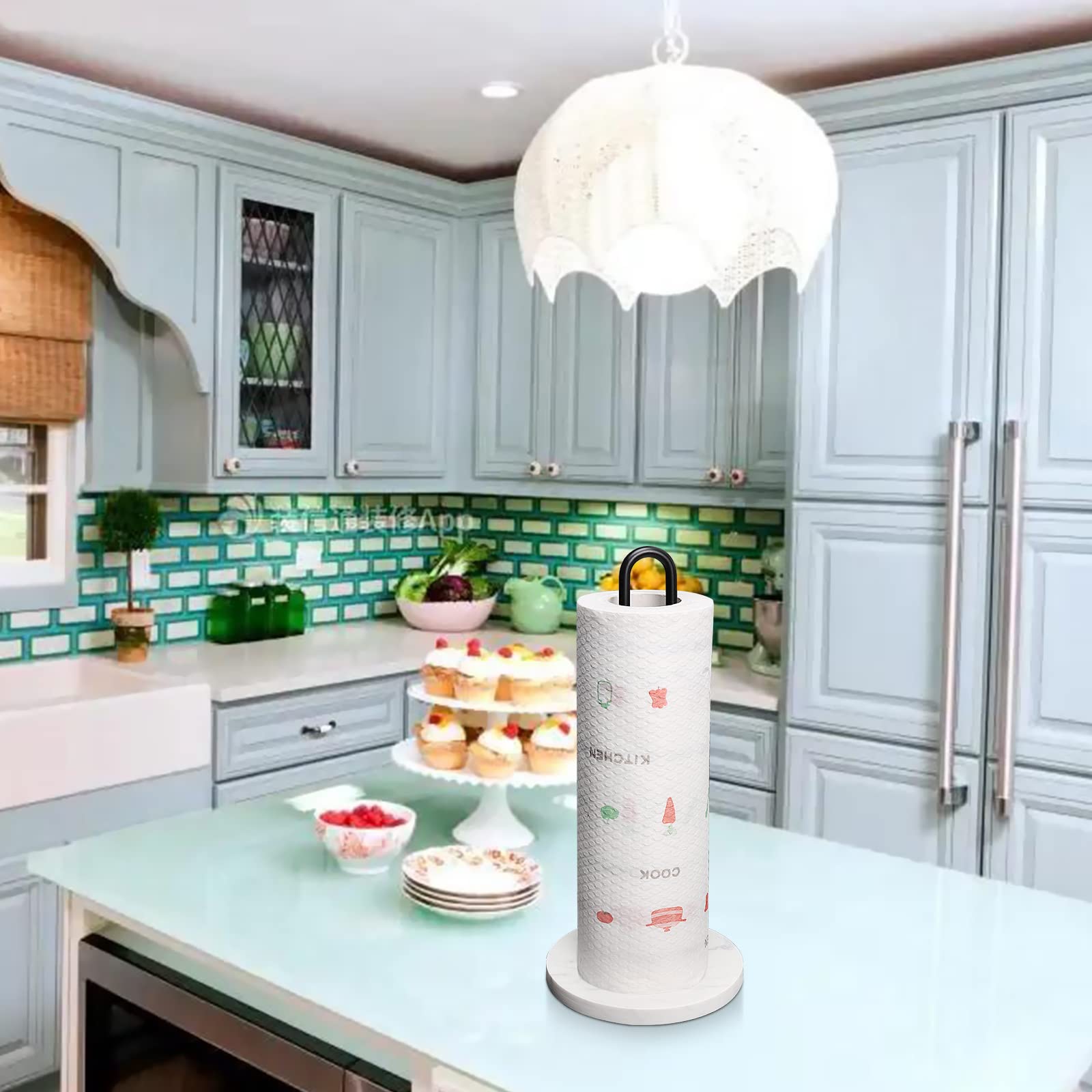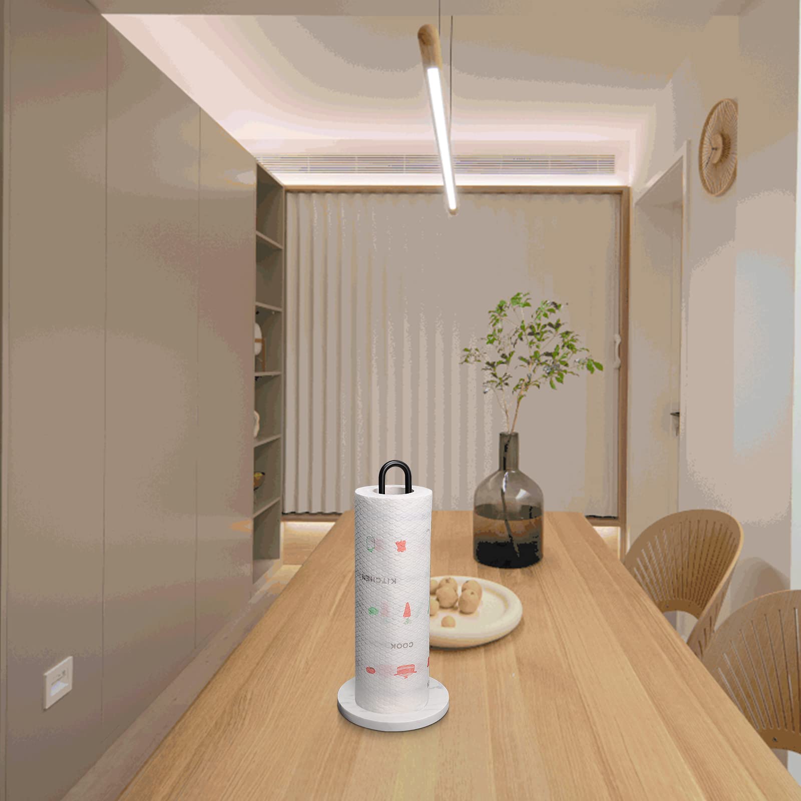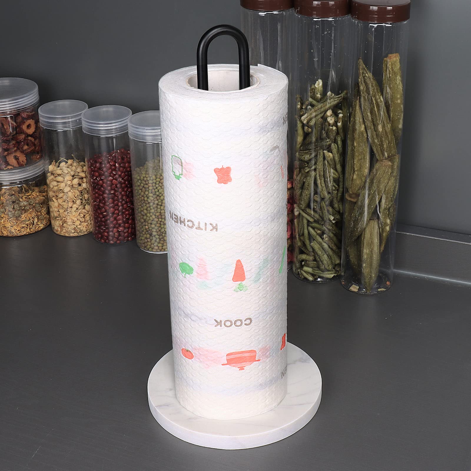 Winmien Simple Paper Towel Holder with Marble Base, Kitchen Standing Magnetic Paper Towel Roll Holder- for Bathroom Kitchen Countertop, Standard or Jumbo-Sized Roll Holder(Black)