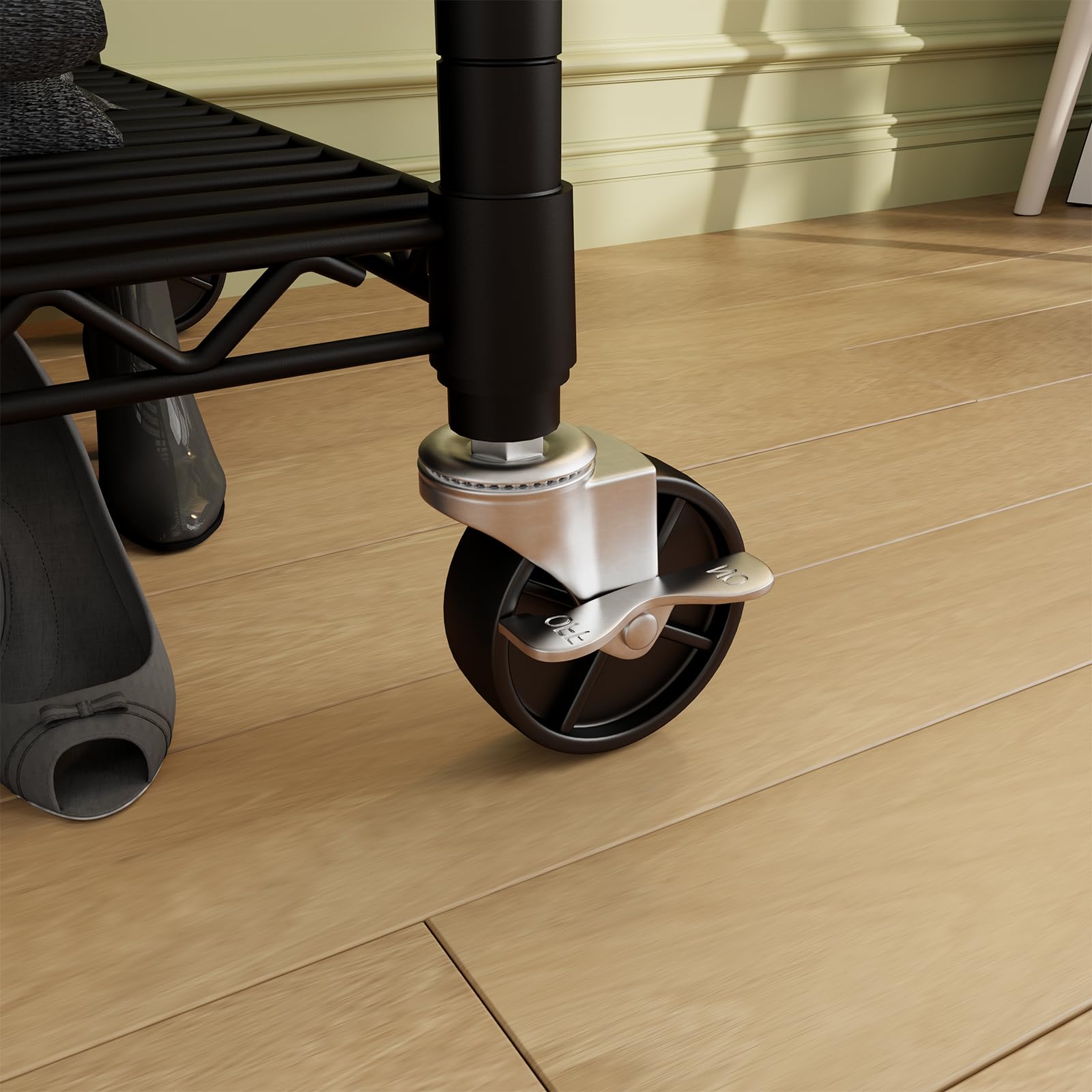 - Rolling garment rack:Designed on 4 rolling casters that can be used on nearly any surface for easy maneuvering,casters lock for safety and stability