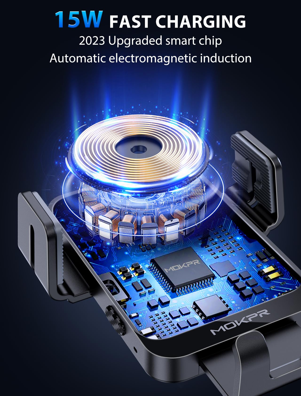 Wireless Car Charger, MOKPR 15W Fast Charging Auto-Clamping Car Charger Phone Mount Air Vent Cell Phone Holder Compatible iPhone 15/14/13/13 Pro/12 pro/12/11/X/8, Samsung Galaxy S23/S22/S21/S20, etc