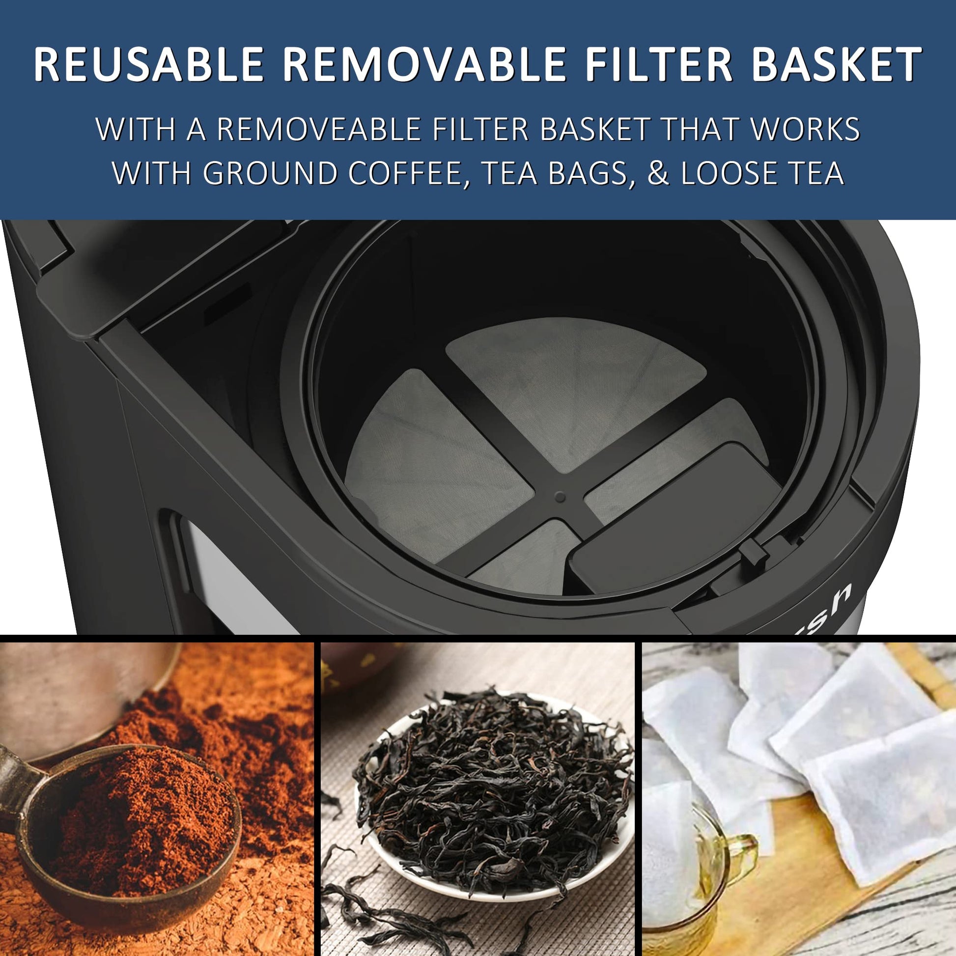 - ECO FRIENDLY DESIGN-The Wirsh Iced Tea maker comes with a reusable removable filter basket (Dishwasher Safe) which works with fresh ground coffee, tea bags, and loose-leaf teas, saving money and decreasing waste from paper filters.