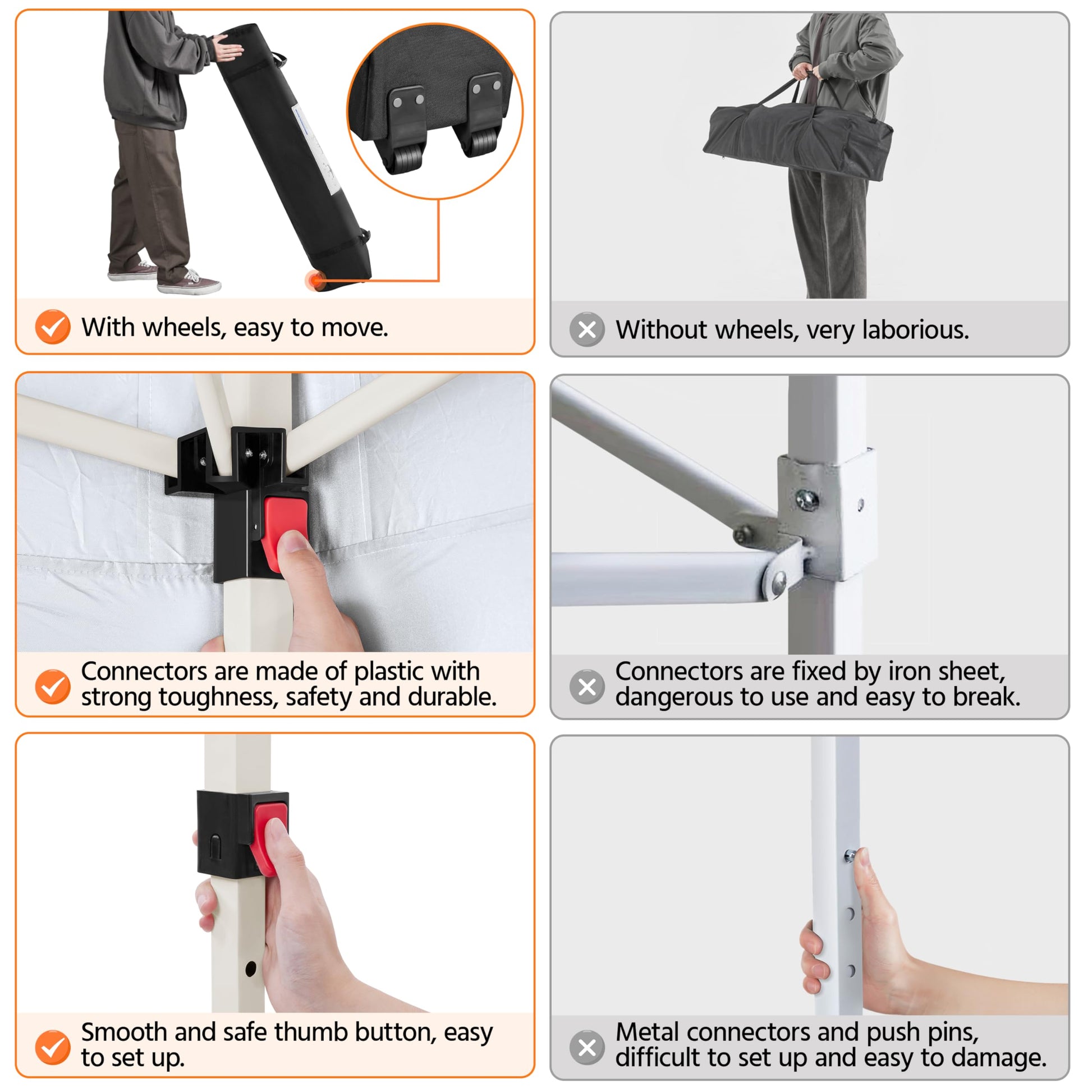 - Better Wind Resistance: The additional fabric covers on the legs of this pop-up instant canopy tent can enhance the overall wind resistance to some extent, creating a barrier that helps reduce the impact of wind on the structure