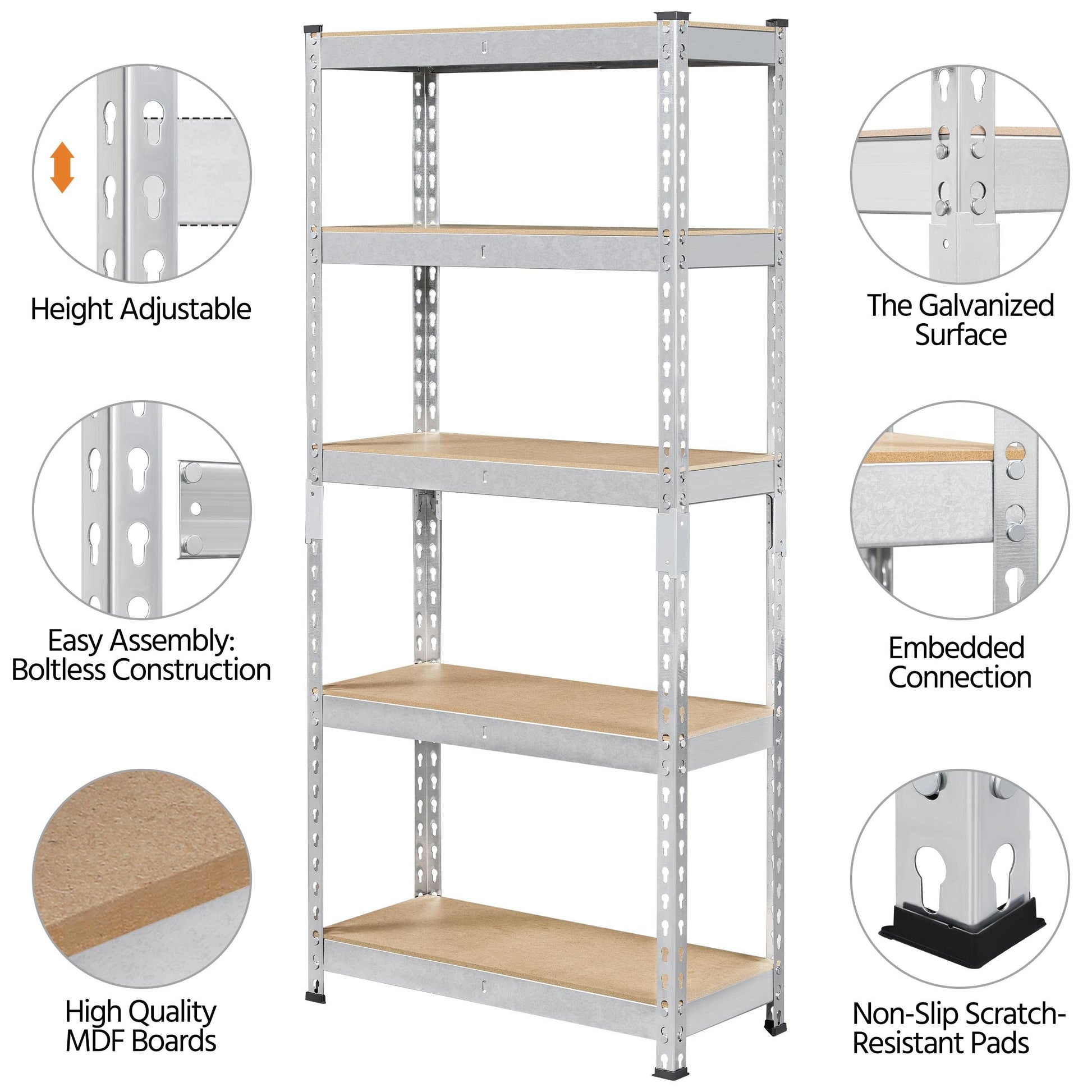 - Wide Application: This 5-tier boltless rack with three color options, a minimal structure, and adjustable shelves has wide usage and is suitable for offices, garages, living rooms, kitchens, workshops, warehouses, balconies, or anywhere needed