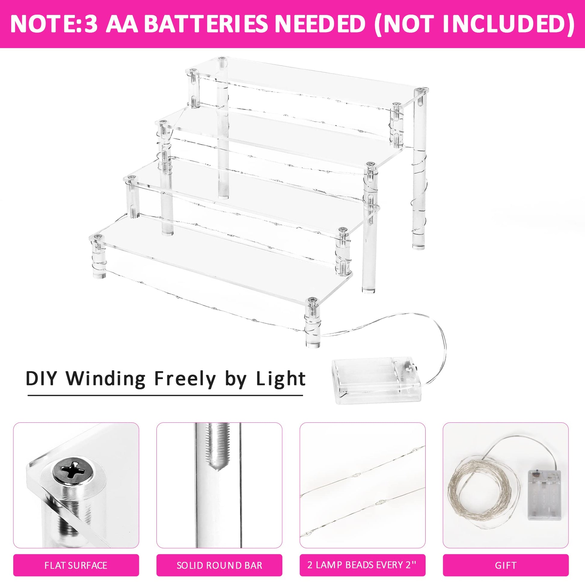 - Multifunctional Design: This 4-step acrylic riser has wide applications in your store, boutique, bakery or home, being ideal for displaying anything from cupcakes, desserts, glassware, figurines, perfumes, cosmetics, makeup accessories, jewelry and more!