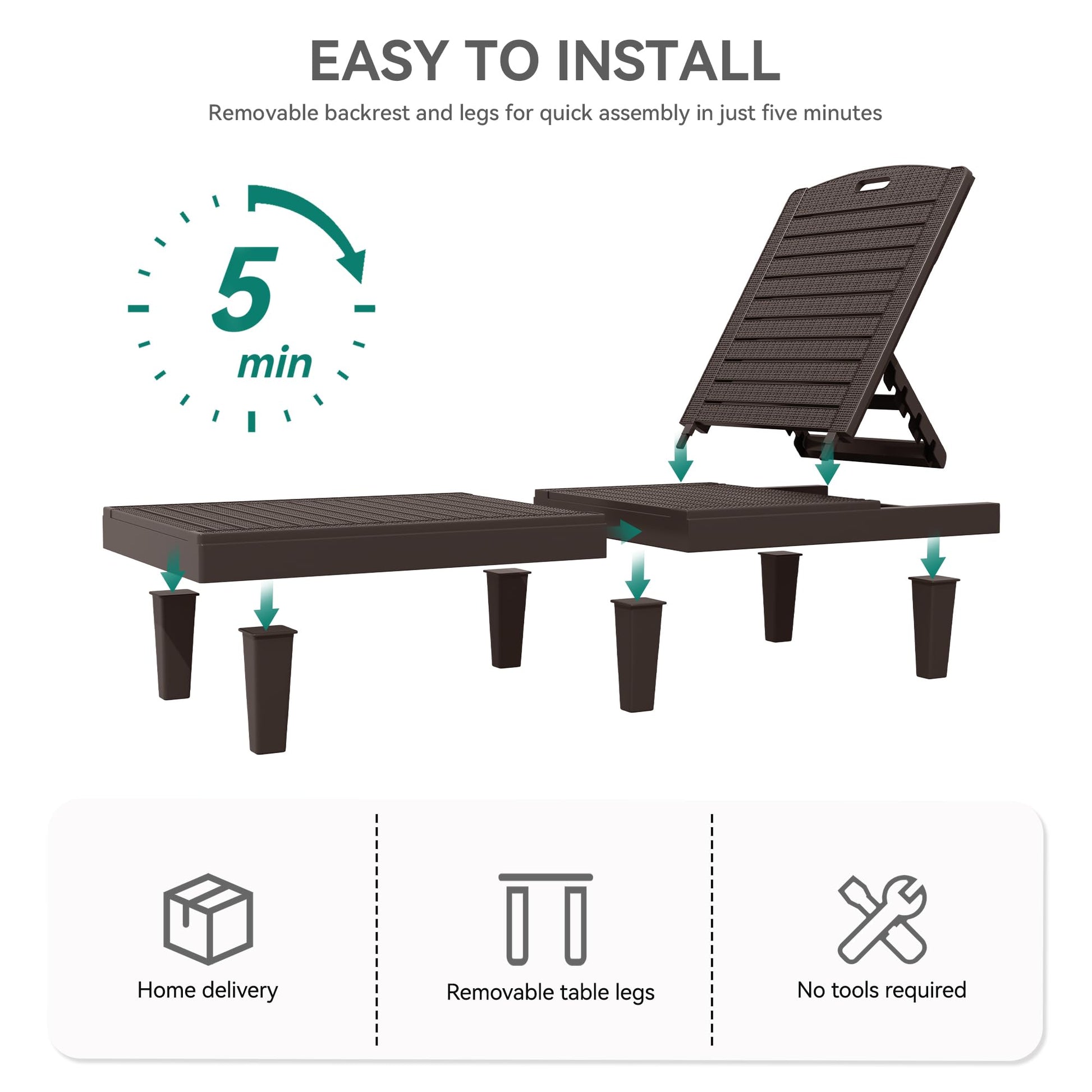 - Efficient Setup: Can be quickly assembled by one individual in 5 minutes, the outdoor lounge chairs requires no tools or expertise; Once assembled, you can immediately enjoy its inviting design