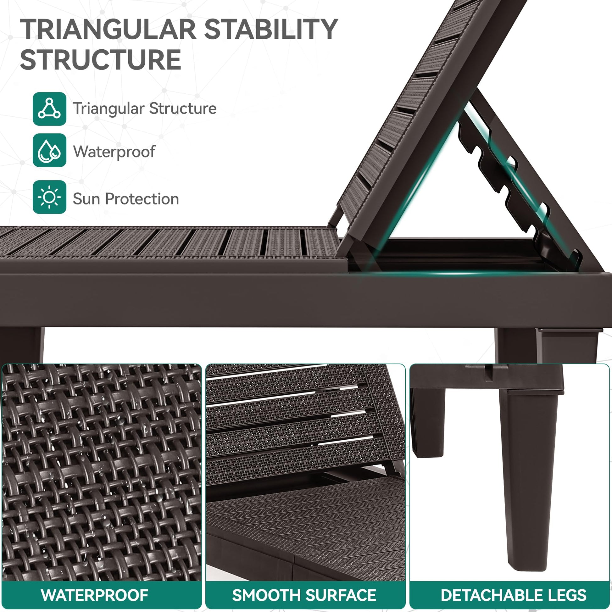- Reliable Material: Made using upgraded polypropylene with 352 lbs weight capacity, our pool lounge chairs ensure long-lasting durability; The stable base prevents bending, while the chairs are fade and UV-proof for year-round protection