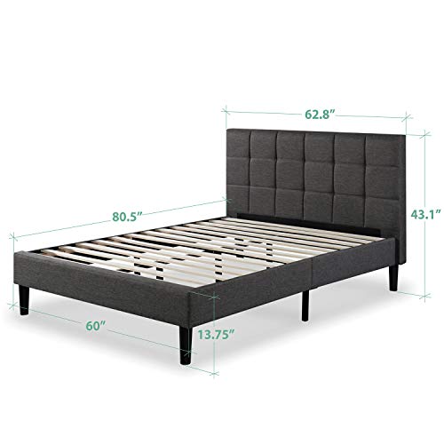 ZINUS Lottie Upholstered Standard Bed Frame / Mattress Foundation / Wood Slat Support / No Box Spring Needed / Easy Assembly, Grey, Queen