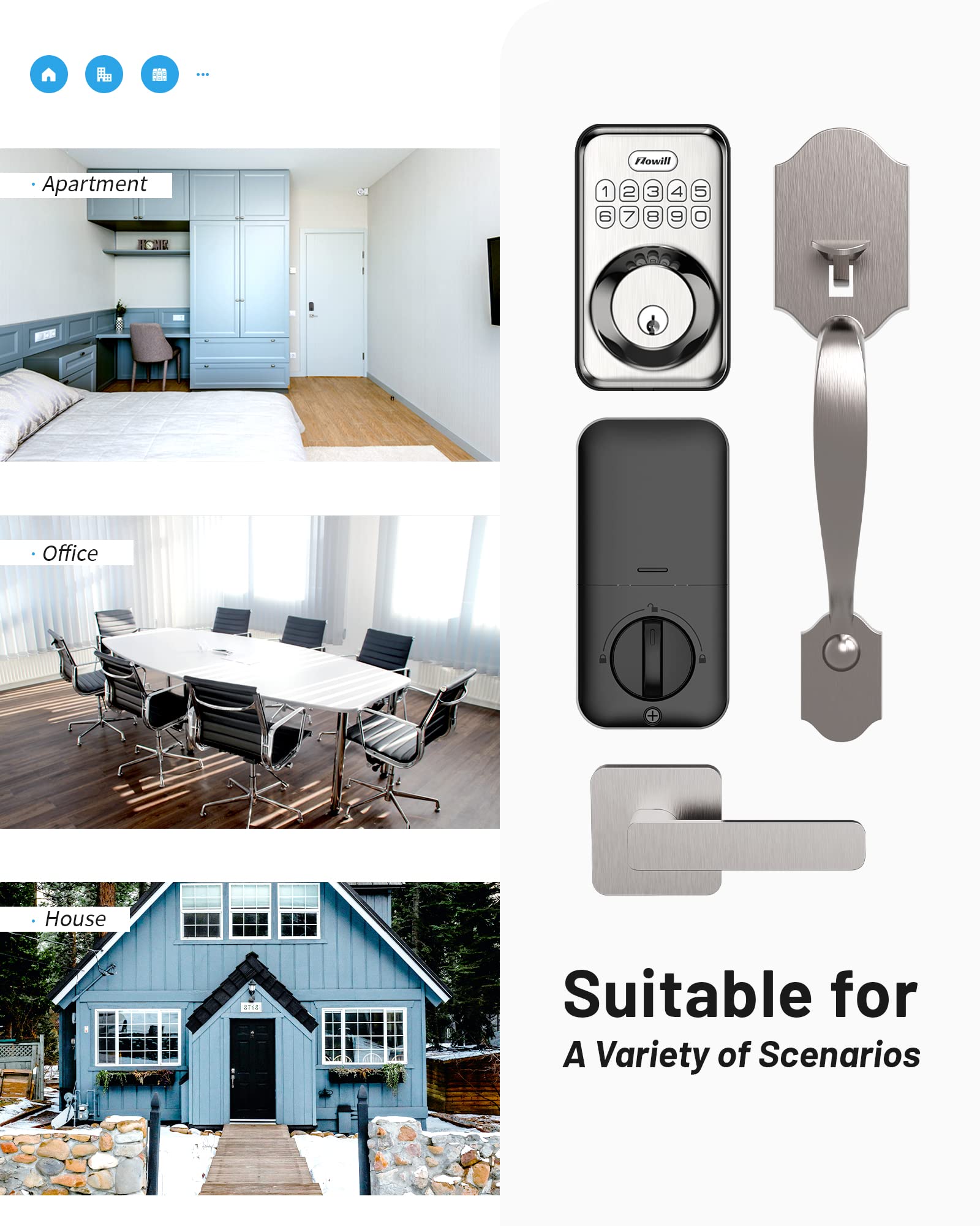 - Easy Installation: The electronic keypad deadbolt fits almost every kind of doors(35-45mm thinkness). You can replace your current lock in minutes with just a screwdriver. Three colors optional, this front door lock handle set adds classy and unique style to your home. Zowill offers at least 1 year product warranty and Lifetime after-sales service from the date of purchase.