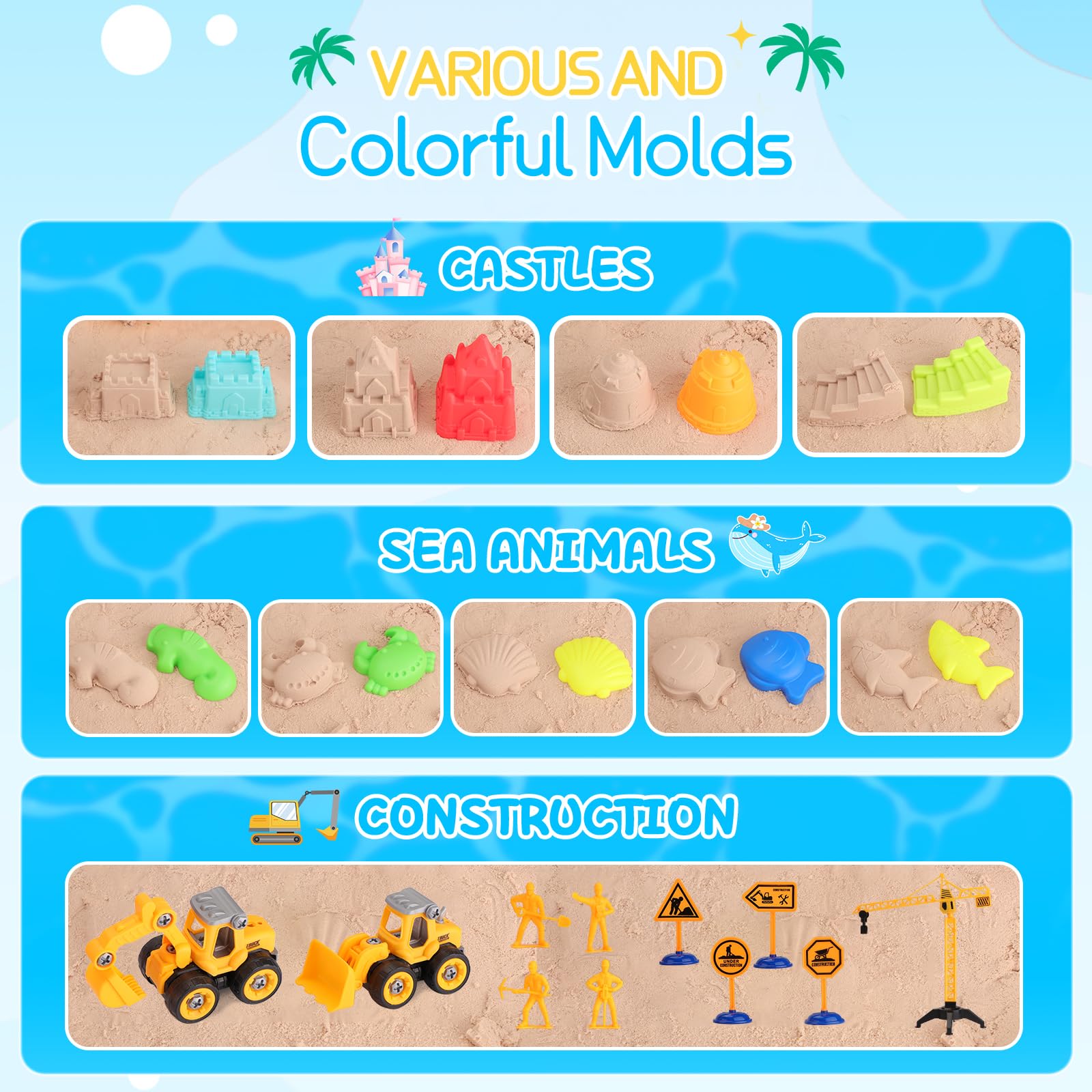 - 【Educational Kids Beach Toys】- The kids get to explore and simulate real-life construction scenarious,Enhancing creativity and imagination with the included sand molds designed to construct sand castles, fostering a sense of accomplishment in young builders.Popular beach toys for kids ages 4-8,beach toys for kids ages 8-12.